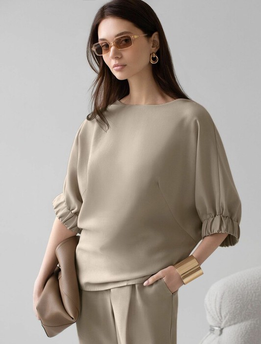 22.03 Vilatte Свободная блузка с вырезом лодочка из плотного лиоцелла D29.359 с
