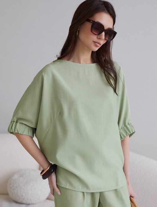 Свободная блузка темно-синего цвета выполнена из плотного лиоцелла. Лиоцелл это более дорогой и экологичный вариант вискозы, очень прочный и шелковистый. Современная интерпретация кроя «летучая мышь» дополнена акцентными эластичными манжетами. Эта блузка идеальна для любого типа фигуры, в том числе и на королевские размеры. Этот крой создан для того, чтобы мягко скрыть лишние объемы. Эта повседневная блузка с вырезом лодочка создана для легкого и утонченного стиля. Мягкие линии кроя создают невероятно эффектный образ, который подчеркивает естественную красоту, не стесняя движений, а свободный фасон дарит ощущение абсолютного комфорта и уверенности. Блузка красиво драпируется при движении, создавая летящий, воздушный эффект.