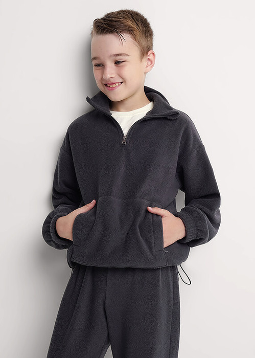 Создавай стильные луки и оставайся в тепле! Топовая модель толстовки из флиса с короткой молнией. Оверсайз силуэт, функциональный кариман и мягкий воротник стойка. Сочетай толстовку с брюками из новой коллекции и будь в тренде!