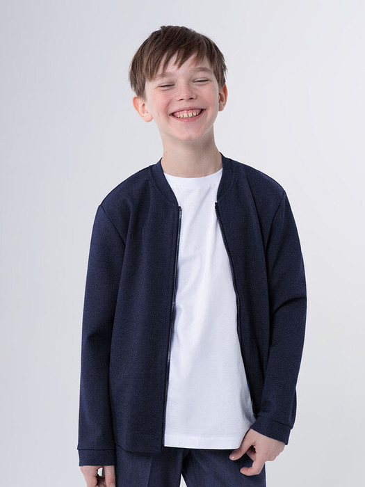 Классический трикотажный бомбер для школы — это идеальный выбор для стильного и комфортного образа вашего мальчика. Изготовленный из смесовой вискозы, он обеспечивает отличную воздухопроницаемость и приятные ощущения на коже. Свободный силуэт не сковывает движения, что делает этот бомбер универсальным вариантом для повседневной носки. Воротник-стойка придает модели современный вид, а длинные втачные рукава обеспечивают дополнительное тепло в прохладные дни. Манжеты на рукавах и низ оформлены резинкой, что помогает сохранить форму изделия и предотвращает попадание холодного воздуха внутрь. Застежка на металлическую молнию добавляет практичности и позволяет легко надевать и снимать бомбер.