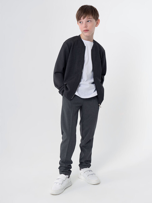 Классический трикотажный бомбер для школы — это идеальный выбор для стильного и комфортного образа вашего мальчика. Изготовленный из смесовой вискозы, он обеспечивает отличную воздухопроницаемость и приятные ощущения на коже. Свободный силуэт не сковывает движения, что делает этот бомбер универсальным вариантом для повседневной носки. Воротник-стойка придает модели современный вид, а длинные втачные рукава обеспечивают дополнительное тепло в прохладные дни. Манжеты на рукавах и низ оформлены резинкой, что помогает сохранить форму изделия и предотвращает попадание холодного воздуха внутрь. Застежка на металлическую молнию добавляет практичности и позволяет легко надевать и снимать бомбер.