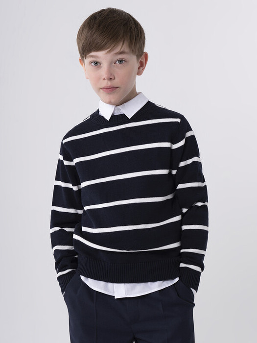 Универсальный и стильный джемпер для школы станет отличным выбором на каждый день. Мягкий, легкий и приятный к телу благодаря материалу из 100% хлопка, он обеспечит комфорт в течение всего дня. Изделие выполнено в полоску, что добавляет образу динамичности и современности. Такой дизайн легко сочетается с различными элементами гардероба, делая его идеальным как для повседневной носки, так и для школьных мероприятий.