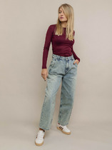 Широкие джинсовые брюки-джоггеры из качественного 100% хлопкового денима, который не растягивается и не теряет форму. Свободные в бедрах штанины, зауженные книзу с эластичными резинками на манжетах. Классическая средняя посадка по талии, эластичный пояс-резинка на завязках, два боковых прорезных кармана и два накладных задних кармана.Характеристики:Ткань:  100% хлопокПроизводитель: batik