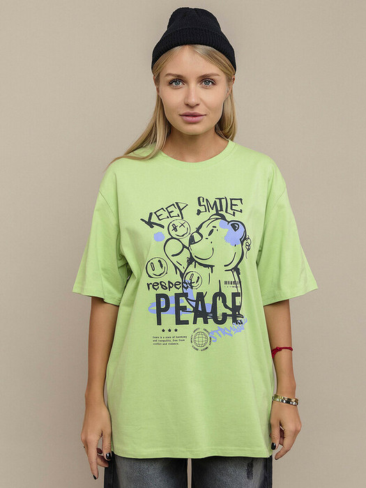 Футболка унисекс салатовая для детей и подростков с коротким рукавом из супрема пенье. Силуэт оверсайз, спущенный рукав, стильный принт. Подойдет для повседневной носки и активного отдыха. Изготовлена из ткани высокого качества.Характеристики:Ткань: Супрем 92% хлопок 8% эластанПроизводитель: batik