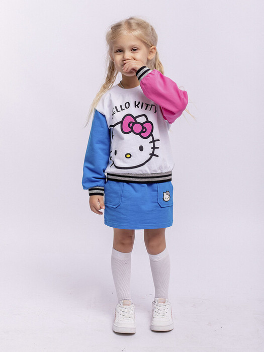 Юбка для девочки голубая с карманами из футера, принт Хелло Китти.