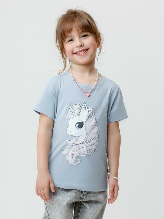 Футболка для девочки из гладкого трикотажа, произведённого из высококачественного натурального хлопка. Застёгивается на плече на кнопки в размерах 92 и 98. Оригинальный принт выполнен из стойких текстильных гипоаллергенных красителей. Изделие сохраняет цвет и форму после многократных стирок. Все трикотажные полотна производятся в соответствии с нормами швейцарского сертификата ЭкоТекс.