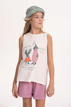Футболка для девочки из гладкого трикотажа, произведённого из высококачественного натурального хлопка. Застёгивается на спине на кнопки в размерах 92 и 98. Оригинальный принт выполнен из стойких текстильных гипоаллергенных красителей. Изделие сохраняет цвет и форму после многократных стирок. Все трикотажные полотна производятся в соответствии с нормами швейцарского сертификата ЭкоТекс.