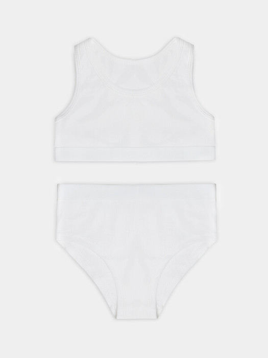 Трусики выполнены из того же дышащего материала, что и топ. Мягкая обработка швов предотвращает натирание, а эластичная тесьма по верхнему краю надежно фиксирует изделие. Комплект нижнего белья для девочки подходит для повседневной носки, занятий спортом или отдыха.
