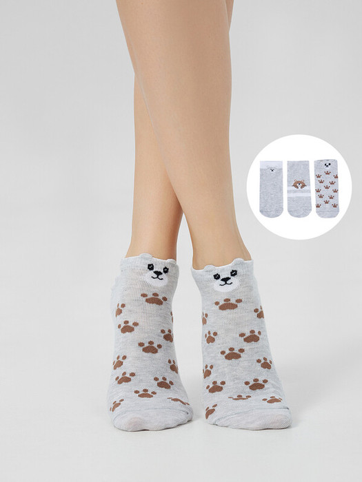 рис.3178 Мультипак из укороченных детских носков с рисунком в виде лапок, полосок и мишек с элементом пикота. Составляющие: 406A-3179, 406A-3180, 406A-3181