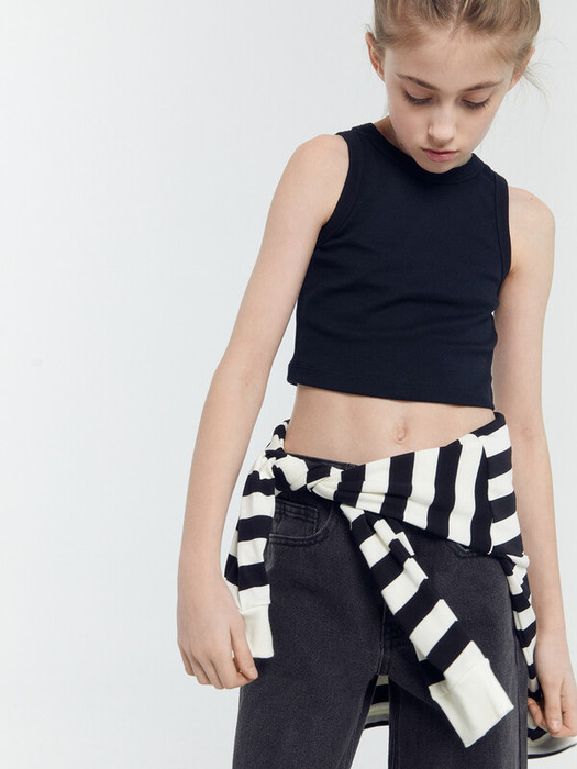 Топ для девочек прилегающего силуэта. Горловина круглая. Проймы и горловина окантованы бейкой из основного полотна. Низ изделия обработан швом в подгибку.