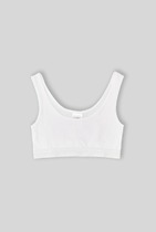 Хлопковое бюстье прилегающего силуэта для девочек. Выполнено из легкой и приятной к телу трикотажной рибаны. Вырез горловины и проймы окантованы эластичной тесьмой. На бретелях есть кольца-регуляторы. По нижнему краю бюстье расположена удобная и стильная жаккардовая тесьма. Идеально!