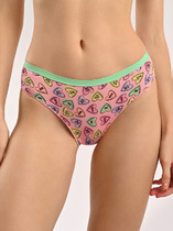 Трусы бикини женские из эластичного хлопкового полотна. Обработка краев по талии - жаккардовая резинка, по ноге - окантовка. Производство Китай.