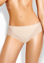 Бразилиано из однотонного хлопкового полотна.По талии обработка резинкой с фестоном. Модель имеет комбинированный отрезной бочок с кружевом и кружево по ножкам со стороны спинки. На детали переда в центре расположен небольшой бант.