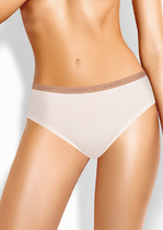 Трусы слипы женские из эластичного хлопкового полотна. Обработка краев по талии окантовочная резинка, по ноге узкая резинка с застилом (сверху).