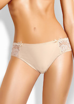 Трусы слипы женские из эластичного хлопкового полотна. Обработка краев по талии - жаккардовая резинка, по ноге - полуокантовка. По переду атласный бант.