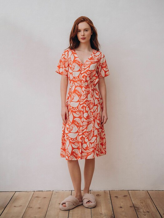 Туника на пуговицах с короткими рукавами и прямым свободным кроем.