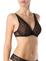 Чашки состоят из трёх частей, что позволяет им идеально повторять форму груди. Кружевные бочки и ластовица добавляют образу дерзкой элегантности. Регулируемые бретели разной ширины и двойная застежка позволяют точно настроить модель под вашу фигуру.