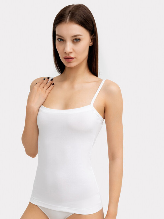 Майка на бретелях полуприлегающего силуэта. Длина – до линии бедер. Базовая расцветка делает майку универсальной!