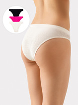 Набор женских трусиков (3 шт.) в различных цветах. Трусы женские слипы хлопок или, как их еще называют, трусы слип-бикини -  популярная модель женского белья. Невероятно удобные, благодаря своей заниженной посадке, они пользуются заслуженной любовью покупательниц. Трусы изготовлены из высококачественного натурального хлопка, дышащего, мягкого, гипоаллергенного - идеального для повседневной носки. Помимо длительного и полного ощущения комфорта, материал отличается долговечностью и сохраняет вид даже после многочисленных стирок. Цвет трусиков останется ярким, рисунок не поблекнет и долго будет радовать вас. Продуманная анатомичная конструкция, плоские швы и деликатные резиночки делают эту модель подходящей для занятий спортом, можно использовать её как спортивное бельё, а также как ночные трусики для сна. Пригодятся трусы-бикини и будущим мамам: низкая талия трусиков удобно помещается под растущим животиком и абсолютно не давит. Благодаря широкому размерному и цветовому ряду, в линейке Mark Formelle вы обязательно найдете модель белья с низкой посадкой по своему вкусу.