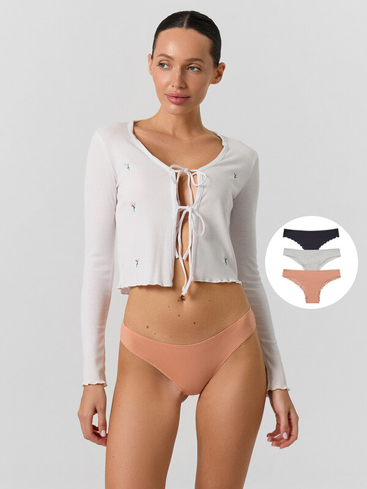 Стильный набор женских трусиков бразилиана (3 шт.) разных цветов из высококачественного хлопка с кружевными деталями. Невероятно удобные, благодаря своей невысокой посадке, они пользуются заслуженной любовью покупательниц. Изготовлены из натурального материала, дышащего, мягкого, гипоаллергенного - идеального для повседневной носки.  Продуманная анатомичная конструкция, плоские швы и деликатные резиночки делают эту модель подходящей для занятий спортом, можно использовать её как спортивное бельё, а также, оно идеально для ежедневной носки. Пригодятся трусы бразилиана и будущим мамам: талия трусиков удобно помещается под растущим животиком и абсолютно не давит. Отлично тянутся, хорошо пропускают воздух и не создают парникового эффекта. Размерный ряд широкий, красивые базовые цвета и модели с принтами - никого не оставят равнодушными. Милый дизайн радует глаз, а дополнить такие трусики легко шикарным верхом из линейки нижнего женского белья. Порадуйте себя и близких красивым женским бельем на праздники и просто без повода!