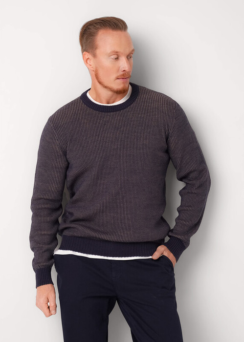 Джемпер с круглой горловиной из смесовой пряжи. Модель выполнена в двухцветной фактурной вязке, которая добавляет объёма и глубины. Универсальный силуэт и мягкая текстура обеспечивают комфорт и стиль на каждый день.