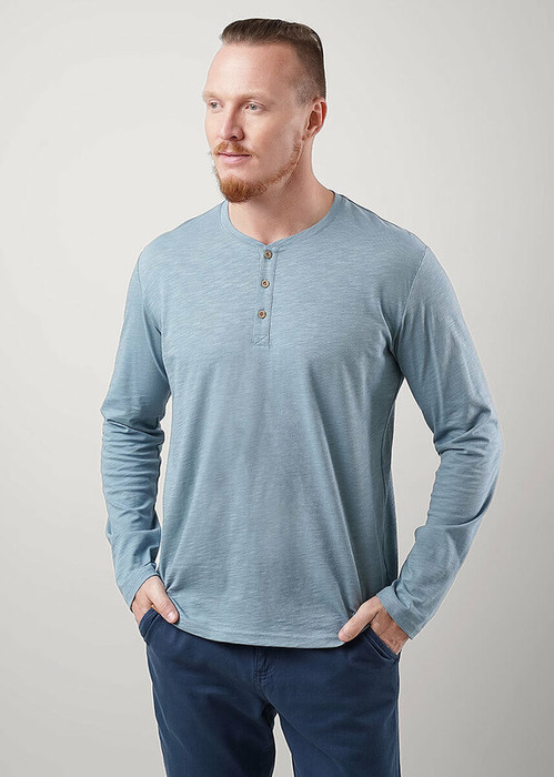 Лонгслив мужской с длинным рукавом, округлой горловиной на планке из фактурного полотна ""флам"". Изделие дополнено имиджевой фурнитурой. Данная модель прекрасно комбинируется с джинсами или шортами благодаря своей универсальности.