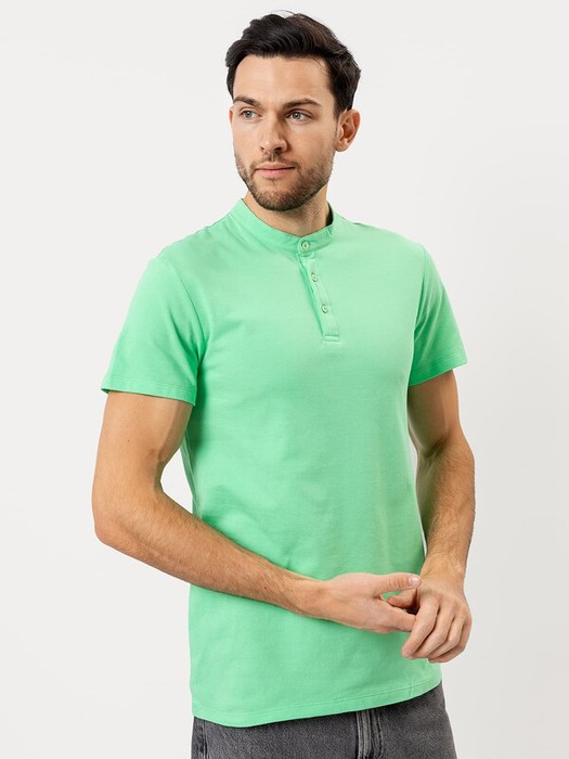 Стильная футболка поло с оригинальным воротником-стойкой и удобной застежкой на 3 пуговицы. Благодаря лаконичному дизайну, прямому силуэту и комфортной длине до середины бедер она наверняка станет любимой в гардеробе, ведь отлично подходит практически ко всему.