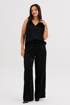 Брюки свободного силуэта. Сиденье немного спущено. В боковых швах обработаны карманы.Подкладка карманов из кулирки.