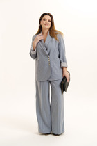 Брюки с посадкой на талии, прямого силуэта. Пояс цельнокроеный с резиной внутри. Низ брюк обработан швом в подгибку.