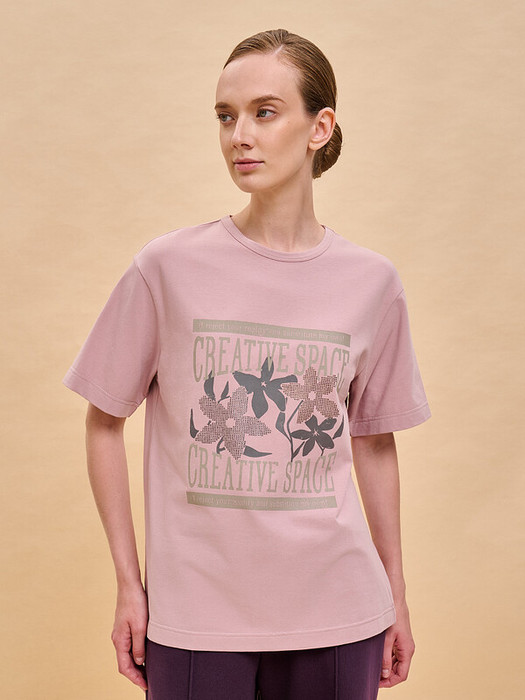 Женская футболка с принтом среднего объёма с коротким прямым рукавом. Вырез горловины обработан окантовкой. Изделие неприхотливо в уходе. Хлопковая футболка женская украшена принтом + актуальной аппликацией из мелких страз. Шрифты в трендовом университском стиле + цветы. Надписи переводятся: «креативное пространство», «я отрицаю вашу реальность и создаю свою собственную!». Принт и аппликация устойчивые, прочные, хорошо переносят многочисленные стирки. В составе ткани преобладает высококачественный хлопок — майка мягкая, воздухопроницаемая, приятная на ощупь. Футболка с надписями выполнена в трендовых и при этом универсальных цветах, которые отлично сочетаются с различными брюками, шортами. Футболки с принтом женские подходят также девушкам, девочкам-подросткам. Хлопковая футболка идеальна для любого времени года, её можно носить как летом, так и в холодное время года в качестве среднего слоя одежды, а также на спорт. Помните о правильном уходе за изделием: рекомендуется стирать при температуре не выше 30 °C, без предварительного замачивания, с изнанки. Это поможет сохранить качество и цвет футболки на длительное время.