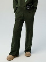 Брюки прямые свободные, посадка средняя. Пояс отрезной, с эластичной тесьмой внутри (внутренняя 50мм 50RV). С внешней стороны пробиты петли и вставлен шнур 10PX-2. В боковых швах обработаны карманы. По бокам  лампасы из кулирки.