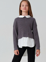 Джемпер с высоким воротником-стойкой для мальчиков. Выполнен из хлопкового трикотажного полотна. Джемпер прямого силуэта, длиной до середины бедер. Рукава длинные. На уровне локтей – декоративные детали-заплатки овальной формы. Стильно!