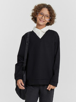 Худи для мальчиков, свободного силуэта (оверсайз), с капюшоном. Горловина округлой формы. Капюшон со средним швом, на подкладке из основного полотна. Шов втачивания капюшона закрыт хб тесьмой. Плечо спущено, рукав втачной длинный. По низу рукава отрезная манжета из рибаны. Пояс отрезной из рибаны, отстрочен. По переду карман кенгуру.