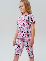 Эта детская пижама — сочетание комфорта, мягкости и практичного дизайна, идеально подходящее для сна и отдыха. Футболка свободного силуэта обеспечивает легкость и комфорт при движении, позволяя ребенку чувствовать себя непринужденно. Горловина круглой формы оформлена обтачкой из рибаны, что добавляет прочности и делает посадку комфортной. Втачные свободные рукава со слегка спущенной линией плеча создают расслабленный силуэт, а обработка низа рукавов и футболки в подгибку придает аккуратный вид. Шорты свободного силуэта дарят удобство и свободу движений, обеспечивая комфорт в течение всей ночи. Эластичный пояс гарантирует надежную посадку, а обработка низа шорт вподгибку делает изделие аккуратным и долговечным. Выполненная из натурального хлопка, пижама обладает мягкостью, воздухопроницаемостью и приятными тактильными свойствами, даря уют и комфорт ребенку. Отличный выбор для стильного и удобного отдыха!