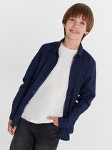 Сорочка верхняя для мальчиков прямого силуэта с воротником. По переду обработана застежка на пуговицы и петли. Диаметр пуговицы 1 см, 4 прокола. Рукава короткие, втачные, слегка спущены. На спине кокетка. Нижние срезы изделия и рукавов обработаны швом в подгибку.