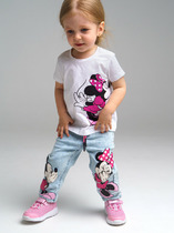 Джинсы детские для девочки. Джинсы из сверхудобного эластичного материала Loop Denim. Loop denim имеет внешний вид классической джинсы, а по тактильным ощущениям мягкий и комфортный, как трикотаж. WIDE LEG - свободная посадка и расклёшенные от бедра штанины. Высокая посадка. Джинсы на резинке со шнурком. Накладные карманы. Контрастный лицензионный принт.