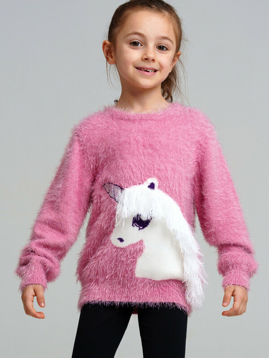 Детский джемпер для девочки. Джемпер из вязаного трикотажа с содержанием хлопка. Модель из капсульной коллекции UNICORN KUROMI (ЮНИКОРН КОРОМИ). Соберите полный образ в едином стиле!  Свитер будет актуален для детского сада, в садик, для прогулок.