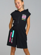 Комбинезон для девочки подростка. Пояс на резинке. Застежка на молнию. Функциональные боковые карманы. Высокое содержание хлопка 95%. Благодаря наличию эластана в составе ткани изделие держит форму и меньше мнется. Модель выполнена из качественного и приятного на ощупь трикотажа.
