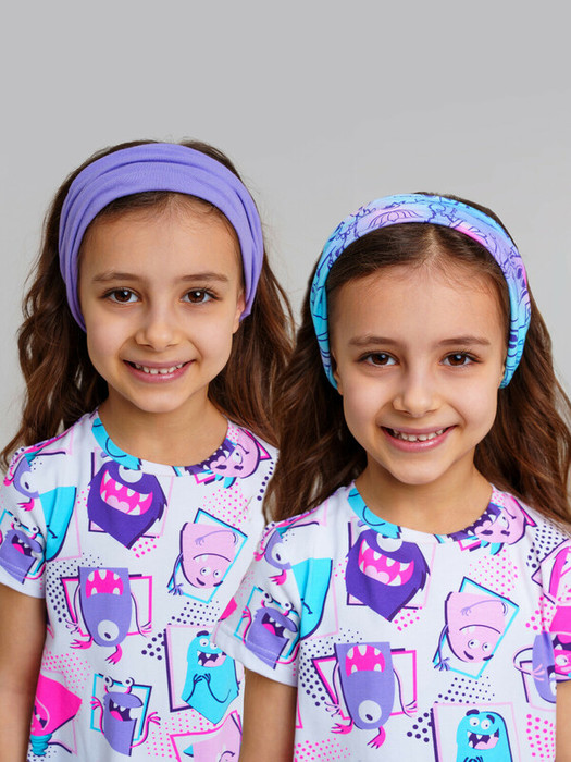 Набор детских косынок для девочки. Комплект косынок на эластичной резинке из трикотажа джерси. 2 шт. в сете. Высокое содержание хлопка. Благодаря наличию эластана в составе ткани изделие проще в уходе и держит форму. Резинка фиксирует бандану на голове.