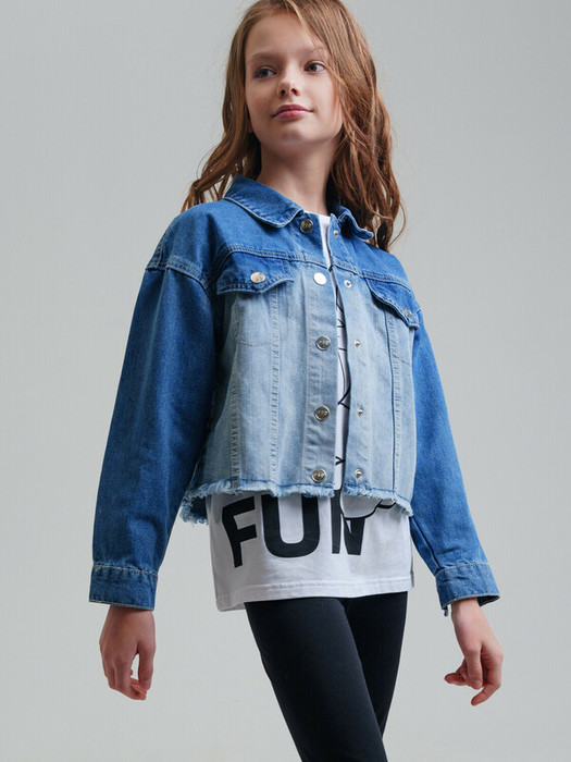 Куртка джинсовая oversize из эластичного денима. Свободная посадка. Застежка на болты. Функциональные карманы.