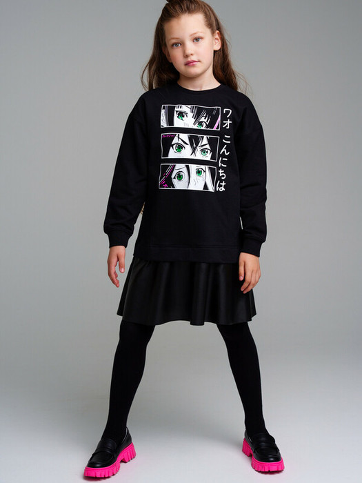 Платье из футера с начесом. Высокое содержание хлопка. Юбка выполнена из искусственной кожи.