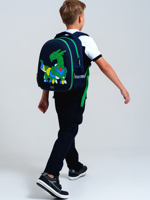 Школьный рюкзак для мальчика подростка. Формованный ранец с ортопедической вентилируемой спинкой, распределяющей равномерно нагрузку на спину ребенка. Широкие вентилируемые лямки, регулируемые  под рост и одежду ребенка. Ранец отлично держит форму, не деформируется при складывании в него школьных принадлежностей, устойчивое дно с пластиковой накладкой. Влагозащитная пропитка, светоотражающие элементы на лямках, карманах и передней панели, а так же по периметру задней и передней панелях, основное отделение на молнии, дополнительный отсек на молнии, два боковых кармана, внешний карман на молнии, в основном отделении большой внутренний карман с тремя отсеками для папок и тетрадей с эластичной лентой липучка, в дополнительном отсеке карманы и отсеки для канцелярских принадлежностей. Рюкзак в школу можно дополнить мешком для обуви и пеналом в том же дизайне.