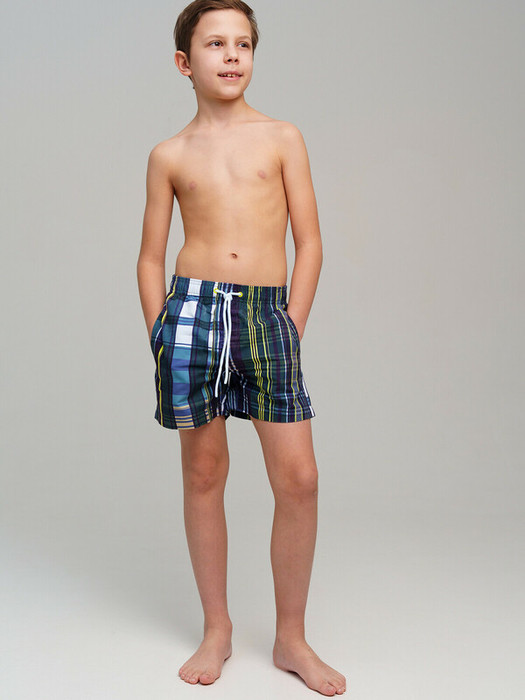 Плавательные шорты из быстросохнущего материала с водоотталкивающей пропиткой для мальчика подростка. Бордшорты для мальчика подростка (swimshort) средней длины. Модель с подкладкой из мягкой сетки в виде трусов, карманы из сетки. Пояс на резинке с дополнительной регулировкой по талии шнурком. Благодаря UF-защите, ткань сохраняет первоначальный вид даже при длительном пребывании на солнце.