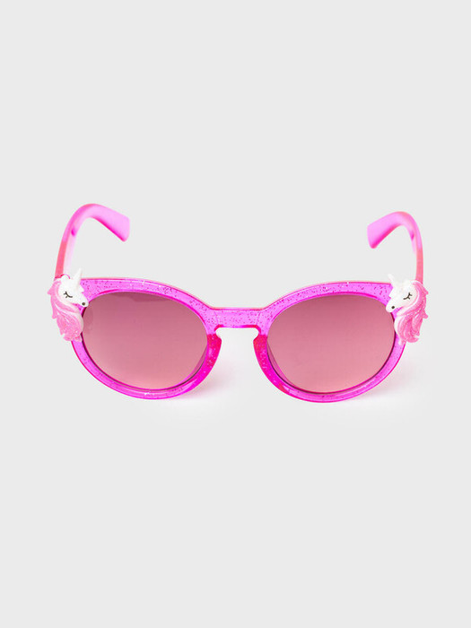 Солнцезащитные очки с единорогами для маленьких модниц. Оправа розовая с блестками. Солнцезащитные очки с фильтром Cat3. Затемненные линзы имеют защиту UV400, которая отражает 100% ультрафиолетовых лучей с длиной волны менее 400 нанометров, эффективно блокируя все ультрафиолетовые лучи при солнечном свете. Гибкая, устойчивая к ударам, оправа создана для того, чтобы дети могли активно играть, не беспокойтесь о случайных падениях очков. Небьющиеся акриловые линзы. Ширина оправы - 132 мм, длина дужек - 129 мм. Обхват головы 50-52 см. Такие очки эффективны для защиты глаз в тропиках, у моря и в горах. В комплекте текстильный чехол из микрофибры и им можно легко ухаживать за изделием. Очки транспортируются в картонной коробке.