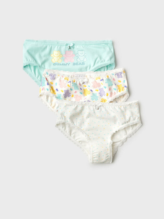 Набор из трех детских трусов-брифов для девочки. Изделия выполнены из мягкого, хлопкового эластичного трикотажа, с широкой резинкой по поясу и окантовкой по вырезам для ног. Внутри предусмотрена ластовица.