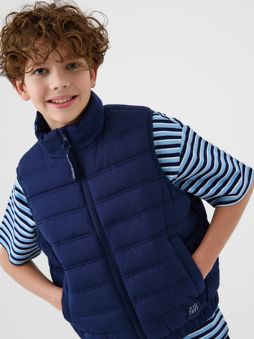 Утеплённый стеганый жилет для мальчика подростка. Температурный режим от +15°C до 0°C. Ткань с ветрозащитной и водоотталкивающей пропиткой. Два боковых кармана на магнитах. Внутри предусмотрен карман на липучке. Воротник стойкой защищает шею от ветра. Практичный и универсальный жилет для прохладной погоды. Светоотражающие элементы.