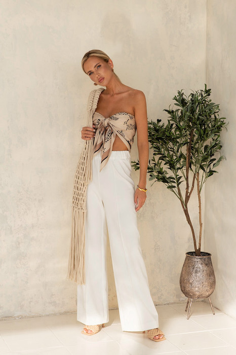 Брюки прямого силуэта из эластичного полотна. На передней части брюк застрочены стрелки. Пояс притачной с эластичной резиной.
