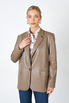 Жакет из эластичного полотна, с покрытием, имитирующим кожу. Изделие полуприлегающего силуэта с английским воротником и застежкой на пуговицы. На передней части жакета выполнены карманы в рамку с клапаном. По центру задней части выполнена шлица - элемент декоративный и необходимый. Обеспечивает свободу движения, добавляет шику и элегантности. Втачной длинный рукав, снизу имитация шлицы с пуговицами. Изделие идеально держит форму, имеет четкую линию плеча благодаря плечевым накладкам. Жакет на подкладке.