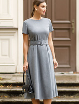 Платье свободного силуэта из плательной ткани. По центру передней части изделия выполнен шов. Цельнокроеная стойка, переходящая в V-образный вырез горловины, визуально делает фигуру стройнее. Втачной длинный рукав. Низ рукава на манжете с застёжкой на пуговицы-жемчужины.