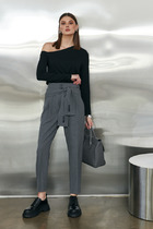 Платье отрезное по линии талии из фактурной плательной ткани. Изделие, прилегающее в верхней части и расширенное книзу. Глубокий V-образный вырез горловины плавно переходит в запах, фиксируется притачным поясом. Втачной длинный рукав.